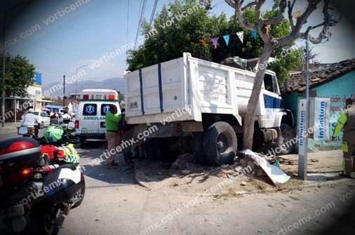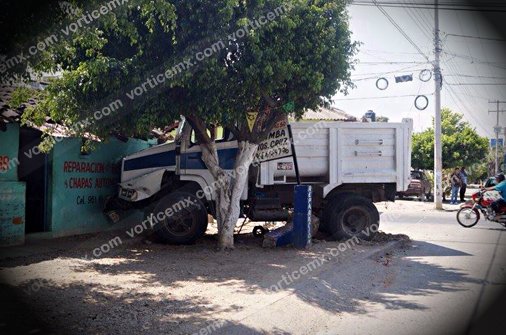 Tuxtla Gutiérrez, Chiapas- A punto de derribar la pared de una casa estuvo un camión volteo luego de un accidente ocurrido sobre la 3ª Oriente y 3ª Sur de Terán, la tarde de este viernes; el camionero y una familia, entre ellas un bebé, fueron auxiliados por paramédicos.